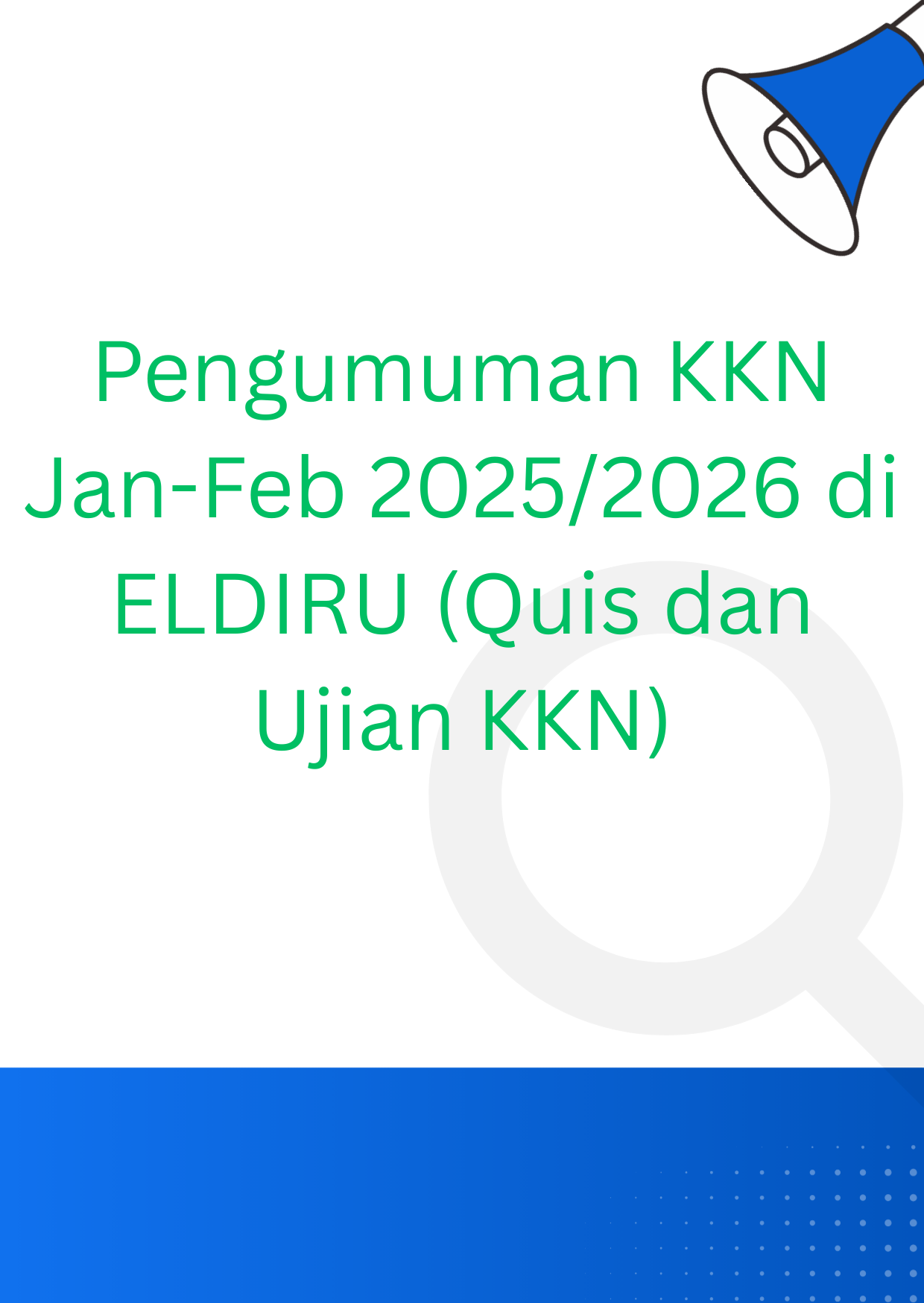 Berikut Pengumuman KKN terkait penjelasan teknis penggunaan ELDIRU (Quis dan Ujian KKN) untuk Mahasiswa KKN Periode Januari – Februari 2026.