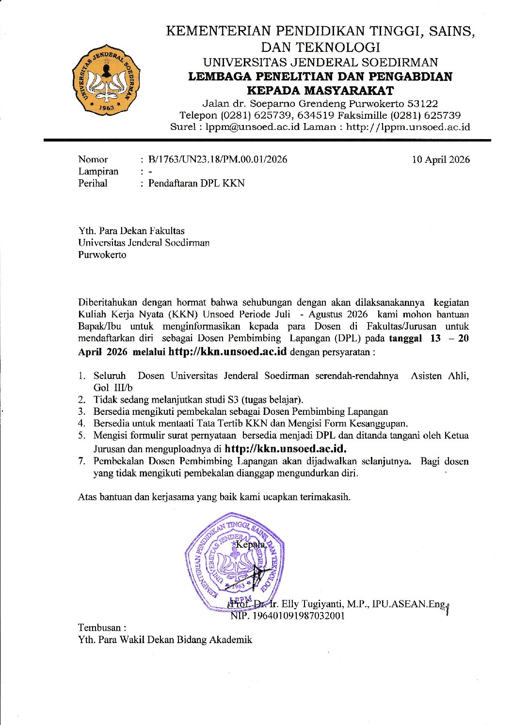 pada tanggal 13 – 20 April 2026 melalui http://kkn.unsoed.ac.id.